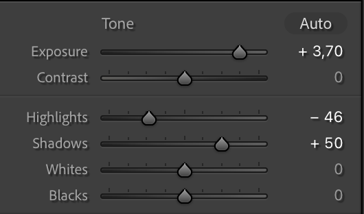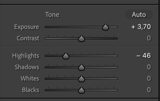 - Sesuaikan Black level dan White Level. Setelah proses penambahan eksposur biasanya terdapat bagian-bagian yang ikut menjadi terlalu terang.
