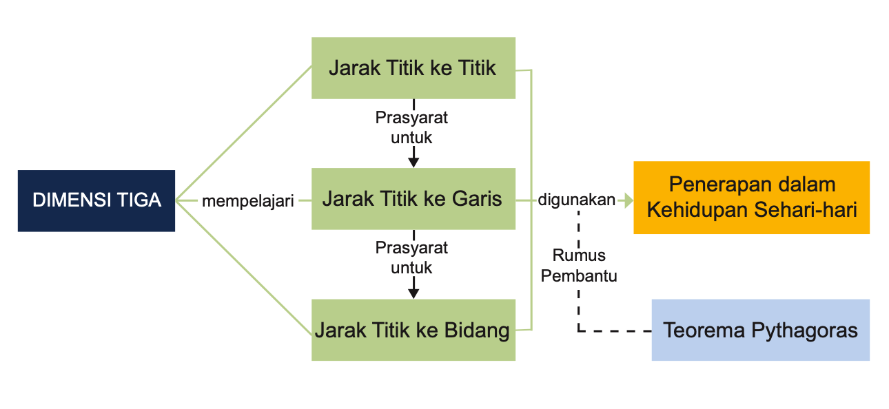 - Mengamati dan menerapkan konsep jarak antartitik, titik ke garis, dan titik ke bidang untuk menyelesaikan masalah pada dimensi tiga.